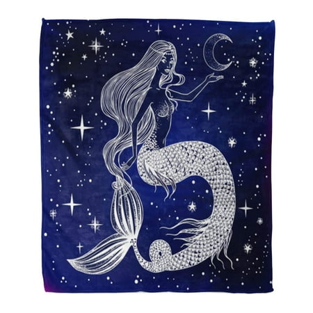 Poglip Throw Blanket 58x80 Inches Beautiful Mermaid With Moon In Her Hands Sea Fantasy Spirituality Mythology Tattoo Warm Flannel Soft Blanket For Couch Sofa Bed Walmart Canada